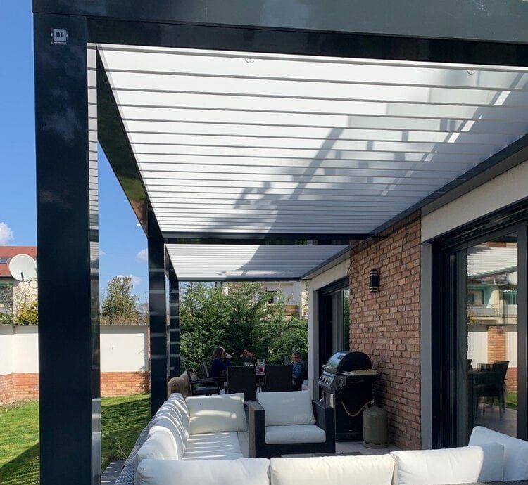 Lamelele izolate ale pergolei bioclimatice reduc zgomotul cauzat de zgomotul ploii,